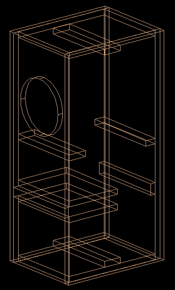 左の画像のように,SPユニットのすぐ後ろに板を置き,下はバスレフっぽく,上はチムニー?っぽくしてみました.